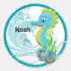 Baby Seahorse | Blue Personalised Round Sticker