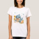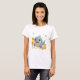 Adorable cartoon-style baby shark illustration featuring a smiling blue shark surrounded by sunflowers, pink roses, seashells, and floating bubbles. Perfect for kids' T-shirt prints, stickers, or nursery decor. High-quality PNG with transparent background for versatile design use.