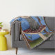A quality printed throw has its advantages. This is a much finer weave throw than its loopier cousins, and though lighter, it is worth the investment for custom room accessorizing. The back is much prettier than the typical brown, and the fringe on the long sides very vivid, the selvage nicely done. Before photographing, I washed the throw in cold water, delicate, with a thicker woven throw the same size. On tumble dry low, this throw was dry in half the time as the other. This is a very practical quality if you use throws for furniture covers or to wrap up in frequently. The sleekness of the fabric makes it a great layer for accenting or protecting without the feeling of sitting on too much stuff. Perfect for napping or when you feel a light chill coming on. The color printing is beautiful and on this fabric, matched the design and color of my Photoshop image. This is an advantage for blending room fabrics and colors. The fringe on the short sides prints the colors from the design image and therefore varies from the side fringe. I streaked a white fractal line through the plaid pattern to give the illusion of weaving. This printed as crisp as an illusory thread, and put some white in the short side fringe, showing another advantage of print vs loomed- for artistic purposes, line lines, detail, and color integrity can be planned and preserved. My loomed throws have color limitations and more of a needlepoint texture. Print throws reproduce an exact image. The throw felt a little stiff straight out of the package, but this went away in the first delicate wash. Of course I searched the wash water for ink or bleeding and there was none.