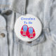 Sweet Grandma to Be button pin, with adorable graphics of a colourful pair of red baby tennis shoes, with blue text, on top, that reads Grandma To Be. Perfect for the new grandmother to be at the baby shower. Text is customisable to say what you want.