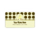 An address label featuring a background of brown polka dots at top. Yellow baby carriage inside yellow circle at top centre. Personalise the brown text.