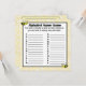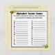 First Side: Baby Shower Alphabet Name Game Yellow and Blue with cute honeycomb and bumble bees.