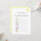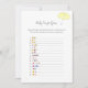 This is a Baby Emoji Pictures baby shower game card. Cute yellow umbrella on a white background on front, and yellow background with white polka-dots on back.