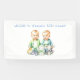 Have your guests all sign the large banner for the mum to be to keep as a baby shower keepsake! Blue and green twin boys baby shower banner.