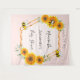 Elegant, fun, summer baby shower tapestry. A rose gold, blush pink background, celebrating a baby girl. With a faux gold geometric frame. Decorated with yellow and orange rustic watercolored sunflowers and happy bumble bees. With the text: Mum to Bee and the name of the mother. Personalise and add the mum to bee's name and a date. Can be used as wall decor for the baby shower or as a photo backdrop.