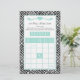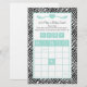 Baby Shower Bingo Game Chic Aqua Mint Zebra