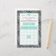 A chic aquamarine baby shower bingo game paper with a trendy zebra print with an aqua mint border. Personalise these feminine animal print baby bingo paper game boards by adding the name of the mother to be and her due date. How to play: Instruct guest to fill in the blanks with baby gifts they think the new mummy will open and check them off when that item is unwrapped. Flat printed image. Original Art copyright of ©PartyPlans