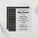 This custom baby shower invitation is a gender neutral design and could be suitable for if the baby is going to be a boy or girl. A polka dot pattern in black and white, with a light grey polka dot pattern behind the writing. The text is in black and can be personalised to create a custom invitation. A stylish monochrome design.