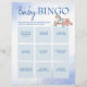 Baby shower baby bingo game personalised template blue with vintage baby toys for a baby boy.