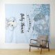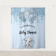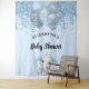 For an elegant Baby Shower. A light blue background. Decorated with faux glitter drips, paint dripping look,glitter, party streamers, blue and silver coloured balloons and a cute elephant baby boy. Personalise and add the name and a date. Can be used as a welcome banner, wall decor for the baby shower or as a photo backdrop.