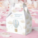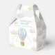 Baby shower blue hot air balloon adventure awaits invitation design. Ideal gender neutral or baby boy favour box design. Perfect coordinating baby shower design collection.