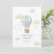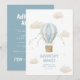 Baby shower blue hot air balloon adventure awaits invitation design. Ideal gender neutral or baby boy design. Perfect coordinating baby shower design collection.