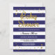 Baby Shower Blue Navy Stripe Gold Glitter Invite