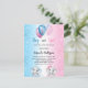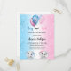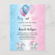 For a baby shower for both a baby boy and baby gir. A blue white and pink gradient background. Decorated with glitter and blue, pink and white balloons and glitter dust. A baby boy elephant and a gaby girl elephant. Personalise and add the name of the mum-to-be and party details. The name and the text: Boy or Girl are written with a hand lettered style script