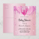 Baby Shower blush pink glitter dust balloons girl Invitation Postcard