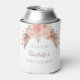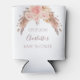 A cooler for baby shower. A white background. Decorated with pampas grass and blush pink and rose gold florals. Personalise and add a date, name. The name is written in dark rose gold colour with a modern hand lettered style script.