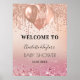 For an elegant Baby Shower. A rose gold and blush pink gradient background. Decorated with rose gold, pink faux glitter drips, paint dripping look,glitter, party streamers, balloons. Personalize and add names and a date.