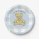 Baby Shower Boy Bear with Blue Buffalo Check Paper Plate