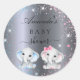 Baby Shower boy girl baby elephants silver Classic Round Sticker