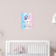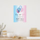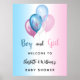 A welcome poster for a baby shower for both a boy and gir. . A blue, white, pink gradient background. Decorated with blue, pink and white balloons. Personalise and add the name's of the parents. The name and the text: Boy or Girl are written with a hand lettered style script