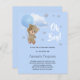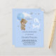 For a baby shower celebrating a baby boy. A blue background with stars. A teddy bear holding a light blue balloon. Personalize and add the name of the mom to-be and party details. The text: Oh Boy! is written with a hand lettered style script