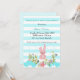 Baby Shower Bunny white and blue teal stripes Invitation