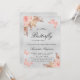 For a modern boho style baby shower. A faux silver looking background. Decorated with rose gold and pink florals, roses, pampas grass and butterflies. Personalize and add a name and party details.