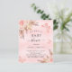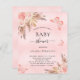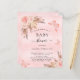 For a modern boho style baby shower. A blush pink rustic background. Decorated with rose gold and pink florals, roses, pampas grass and butterflies. Personalise and add a name and party details.