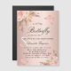 For a modern boho style baby shower. A rose gold gradient background. Decorated with rose gold and pink florals, roses, pampas grass and butterflies. Personalise and add a name and party details.