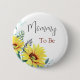 Baby shower button "Mummy To Be" decorated with adorable watercolor sunflowers.