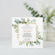 A baby shower by mail invitation is perfect for those that live a long distance from loved ones, but still want to shower the parents to be with love and gifts to prepare for the arrival of baby. This shower invitation features a watercolor frame of greenery and eucalyptus branches with a faux gold frame and the request poem "It’s difficult to live so far away