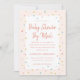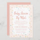 A whimsical baby shower by mail invitation featuring rainbow sprinkles border on a blush pink background.