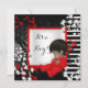 African American Elegant Baby Shower Cute Baby Red, Red with White Blossoms, Asian Cherry Blossom Flowers with Black and White "it's a Boy!"