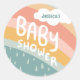BABY SHOWER Cute Clouds Rainbow Rain Custom Classic Round Sticker