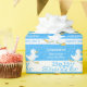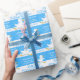 Cute baby shower wrapping gift paper, featuring a cute running white duck character. Blue and white baby boy shower custom wrapping paper. Personalise with your baby shower names and own message. Currently reads Baby Shower Congratulations on your baby boy. A great way to customise your baby showering gifts. Uniquely designed by Sarah Trett.