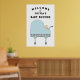 Adorable baby shower welcome decoration featuring baby boy in a blue baby grand piano shaped like a stroller. Edit text to add mother-to-be's name.