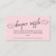 Baby Shower Diaper Raffle Ticket Card featuring a calligraphy handwritten script font set on a pink background to coordinate with you shower invitations