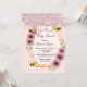 Elegant, fun, rustic summer baby shower invitation, celebrating a baby girl. A girly and feminine light rose gold, pink background. With a faux gold geometric frame and dusty rose faux glitter drips. Decorated with pink sunflowers and happy bumble bees. With the text: Baby shower and the name of the mum to bee on front written with a modern hand lettered style script. Black letters.