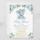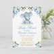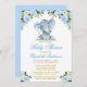 Baby Shower Elephant Bow Blue Floral Gold Invitation