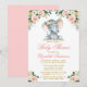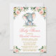 Baby Shower Elephant Watercolor Pink Floral Gold Invitation