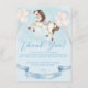 Horse-themed Thank you card featuring illustration of a lovely baby pony and Watercolor fairytale gold stars with pastel colours balloons and blue ribbon for ending celebration!