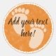 Custom baby footprint watercolor stickers in orange. Great for party decor. Edit text to customise.