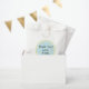 Dolphin in a Bubble, Baby Shower, favour bags. Sweet, swimming dolphins, with green and blue background. Personalise text by deleting "Thank You! Love, Emma" and adding your own. Customise by choosing your favourite font size, colour, and style. Choose from three colour bags, white, ecru and kraft. Paper bag is 8"1 x 5" wide.