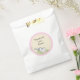 Build-a-Library, Baby Shower, favour bags, with cute cat reading a book on grass, with cream and pink background. Personalise text by deleting "Thank You! Love, Emma" and adding your own. Customise by choosing your favourite font size, colour, and style. Choose from three colour bags, white, ecru and kraft. Paper bag is 8"1 x 5" wide.