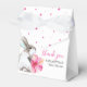 Make your baby showers extra special with these cute and charming baby shower party supplies! These favour boxes feature an adorable watercolor bunny rabbit surrounded by vibrant bright pink hibiscus flowers, creating a whimsical and elegant touch for your event.
