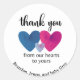 A round sticker with mum, dad, and baby watercolor hearts. "Thank you from our hearts, to yours." Seal a favour bag or box or the back of a thank you card envelope.