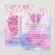 Baby Shower Feet Girl Royal Pink Glitter Floral Invitation