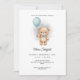 Baby Shower for Boy Blue Balloon, Teddy Bear & Bow Invitation