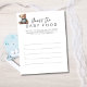 A cute Baby shower game for the boys baby shower. Have your guests fill in the answers for a gift. See our collection of Baby shower games for more options.