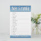 This game was a real hit at the shower! The highly competitive crowd got into it with gusto and it is challenging enough that not everyone solved them all,at least not in the time allowed, which was extended by another minute. Just wish it included an answer key! I had to decipher them all in advance. The text on the bottom section was overprinted in two colors and different type. Likely something I did wrong, but if so, wish I had been contacted before it was printed. Not an issue though at all!